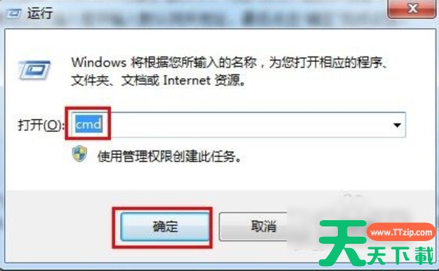 6、最后来测试一下网关。先打开“运行”窗口,输入“CMD”并点确定。