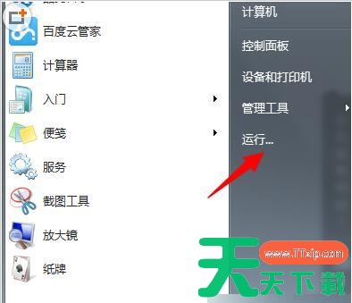 1、打开电脑左下角“开始”菜单,找到【运行】选项,点击打开;