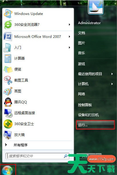 1、点击桌面左下角“Windows”图标,然后点击“运行”,如下图所示: