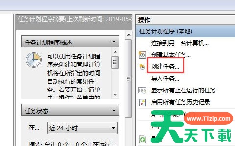 4、然后大家就可以建立自己的计划任务,在页面右侧的“操作”下面,鼠标击“创建任务”字样;