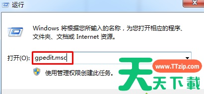 1、进入win7本地策略窗口,具体进入方法可通过运行窗口(组合键“WIN+R”快捷键),输入“gpedit.msc”并回车;
