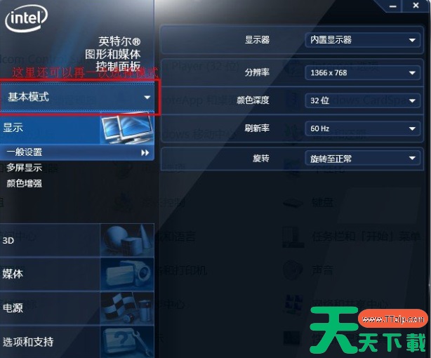 1、集成显卡的校正也是很方便,点击显卡控制面板中的显示设置,确定显示器显示的大小和刷新率,一般情况下液晶显示器选择60Hz就可以了。