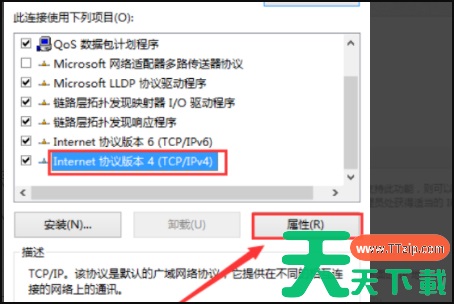 4、弹出页面后,找到internecine协议版本4.,然后单击属性。