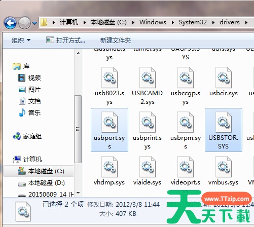 3、找到usbport.sys、usbstor.sys,按ctrl键然后单击选定,再按ctrl+x;
