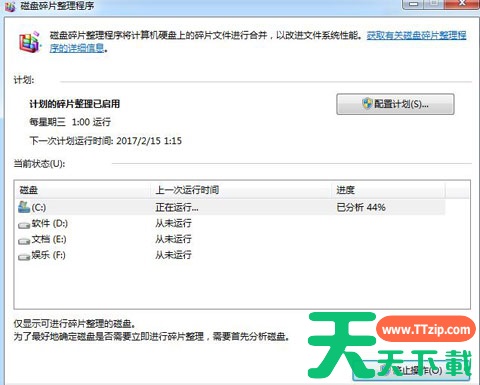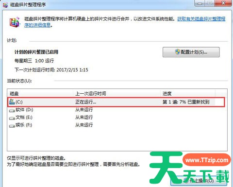4.c盘分析完成后,系统会对win7的c盘进行碎片整理,释放更多的空间。