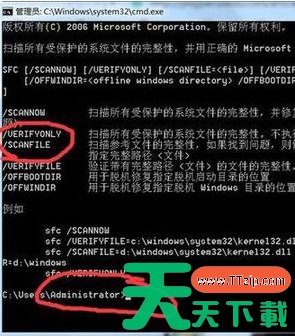 只要在命令框输入sfc /scanfile回车即可。