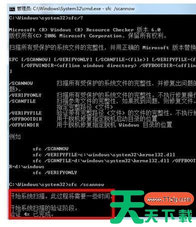 3、在提示符后面输入sfc /scannow回车,执行扫描系统文件并自动修复!等待修复完成即可。