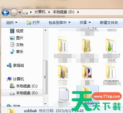 4、打开d:usbbak文件夹,按下ctrl+v粘贴即可。
