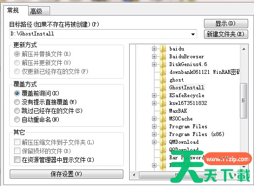 3、选择非C盘的某个文件夹,例如这里我选择D:GhostInstall文件夹,点击确定,等待解压完成;