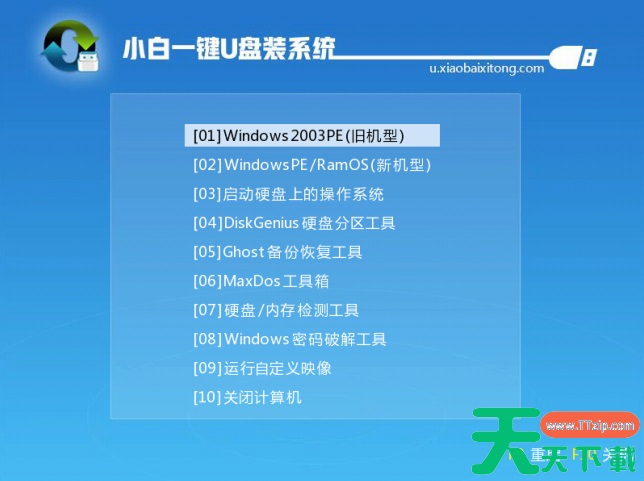 5、 进入到PE选择界面后,选择“02 WindowsPE/RamOS(新机型)”回车。