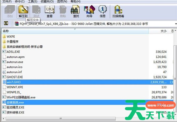 2、按ctrl键,分别单击安装系统.exe和Win7.gho,点击解压到;