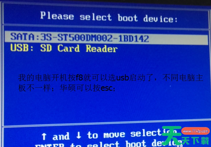 2、按esc或者f8或者按f2或者按del去设置boss主板的启动项,选择U盘启动