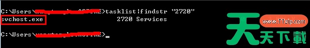 4、继续输入tasklist|findstr "2720",回车,查看是哪个进程或者程序占用了2720端口,结果是:svchost.exe