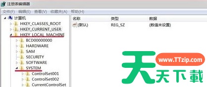 2、依次展开HKEY_LOCAL_MACHINE/HKEY_LOCAL_MACHINE/HKEY_LOCAL_MACHINE/SYSTEM,
