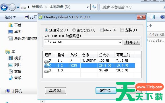 2、将win7.gho文件和Onekey ghost工具放到同一目录,比如D盘,不要放C盘或桌面