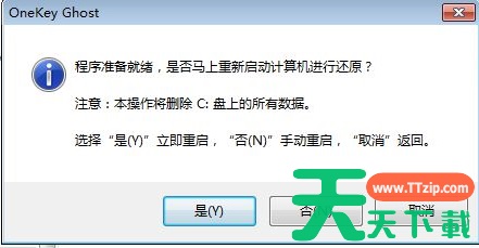 4、弹出提示框,确认没有重要数据之后,点击是,立即重启进行计算机还原,也就是安装系统过程;