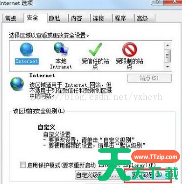 2、在internet选择中,点击安全选项,点击默认级别,如图所示