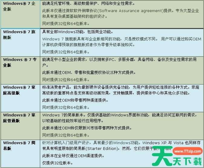 Windows7 企业版仅能通过微软与企业间的软件保障协议获得,它与旗舰版的差别仅在于授权模式的不同,功能完全一致