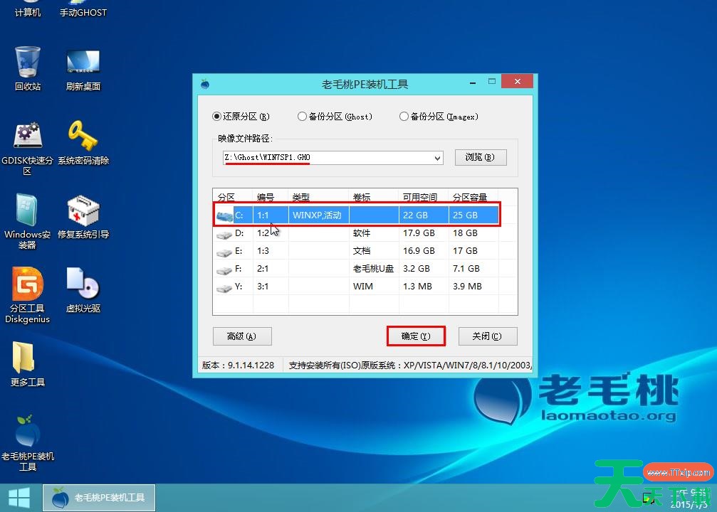 7.映像文件添加成功后,我们只需在分区列表中选择C盘作为系统盘,然后点击【确定】即可。