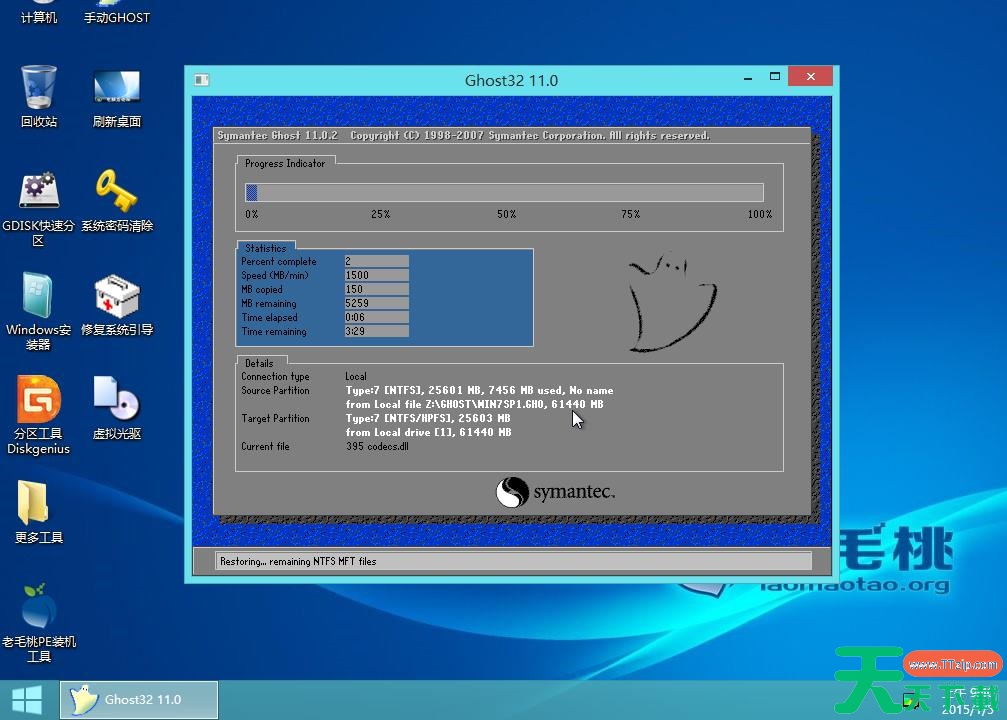 9.完成上述操作后,程序开始释放系统镜像文件,安装Ghost win7系统。我们只需耐心等待操作完成并自动重启电脑即可。
