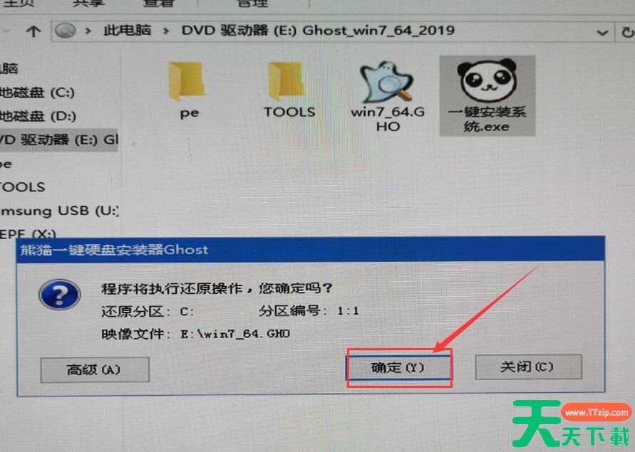5.然后会弹出还原确认窗口,点击【确定】即可自动安装。