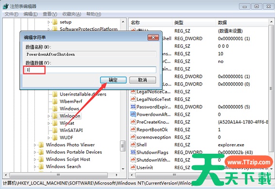 3.最后,只需要右击【PowerdownAfterShutdown】,修改其数值数据为【1】,再按下【确定】键就可以了。