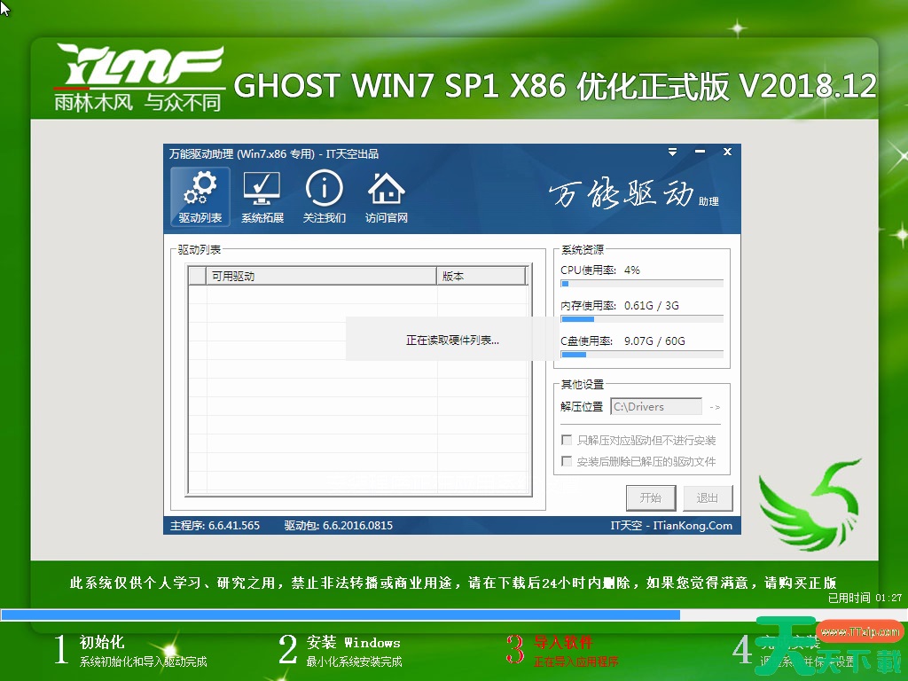 提示一:在执行安装前要把360等杀毒软件关闭,否则无法正常安装。(若360杀毒软件开启,会提示有毒,下载的Ghost Win7系统镜像的软件都是安全无毒的,用户可放心使用。)