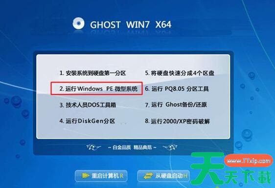 3.如果电脑显示Press any key to boot from CD...,直接按回车,从光盘启动进入这个主菜单,按数字2或点击选项2运行【Windows PE微型系统】。