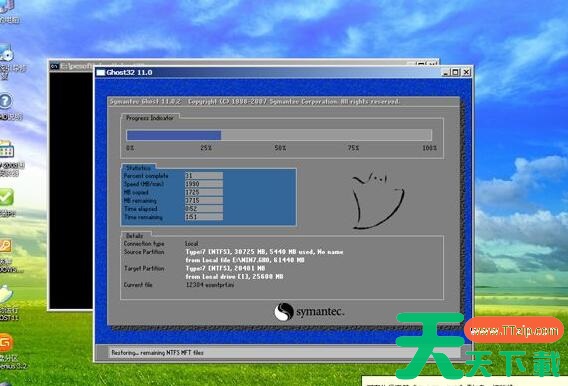 7.进入到这个界面,执行win7系统还原到C盘的操作,等待进度条执行完成,该过程需要5分钟左右;