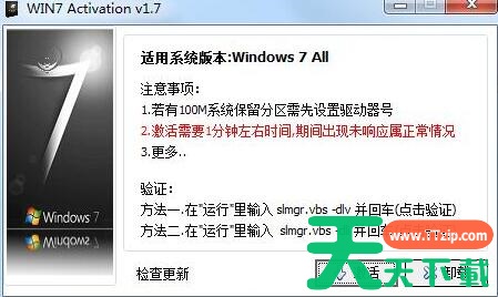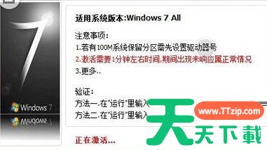 3、运行WIN7Activation后,点击软件主界面上的“激活”,进入激活状态!