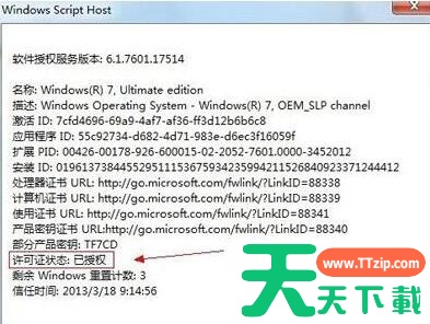 7、再到运行框中输入slmgr.vbs -dli,查看是否也是“已授权”状态,如果这两步操作后均显示“已授权”则表示系统激活成功!