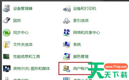 2、在控制面板中点击 “用户账户”图标,进入下一步。