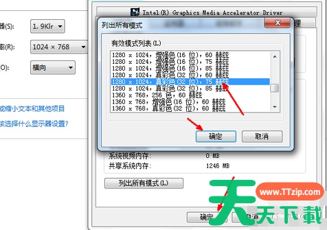 5、用户们便可手选刷新率,我们一般选择75hz的刷新率,然后点击【确定】