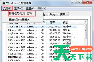 4、点击“文件--新建任务(运行)”,如图所示;