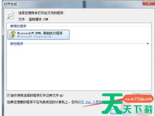 5、在新弹出窗口中勾选始终使用选择的程序打开。然后点击确定。