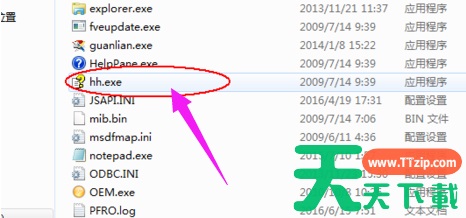 4、在windows文件夹中点击打开hh.exe文件.