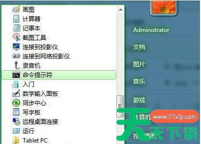 1、依次打开开始菜单-->所有程序-->附件-->命令提示符,右键点击命令提示符,点击管理员身份打开!