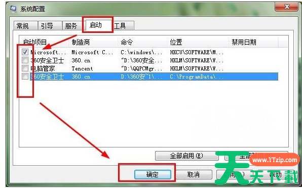2、点击启动选项,关闭非系统软件,确定后重启。