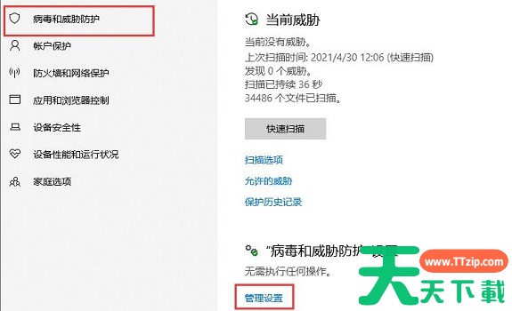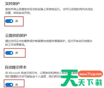 以上就是win10关闭安全中心方法了。天天下载Ttzip提醒,如果没有其他杀毒软件的话,一定要在文件操作完毕之后重新开启防护,不然电脑可能会遭到病毒入侵。