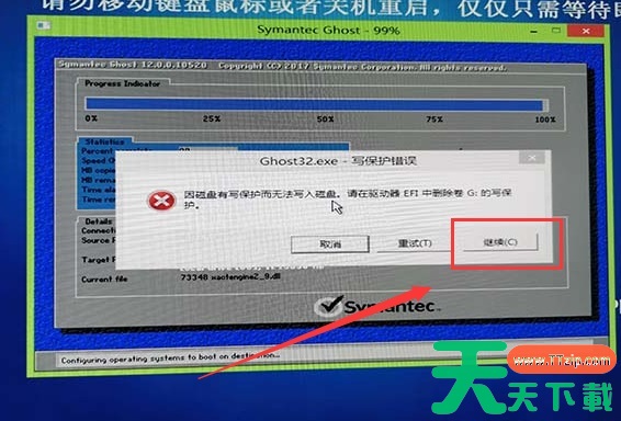 9、之后如果弹出错误窗口,点击“继续”。