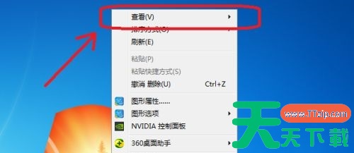 1、鼠标右键点击空白处,在下拉菜单选择“查看”。