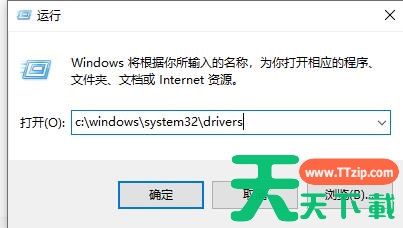 2、输入“c:windowssystem32drivers”,回车即可进入。
