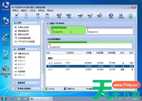 2、下载完成之后,打开分区助手,我们就能看到每个磁盘的容量情况了。