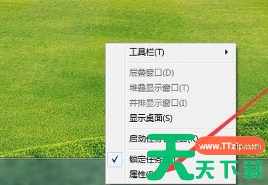 2、首先右键任务栏空白处,选择“属性”