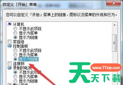 5、在控制面板选项下,勾选“显示为链接”即可