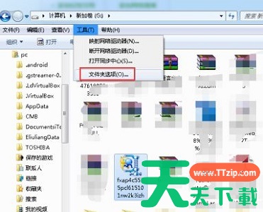 3、在下拉菜单中点击“文件夹选项”