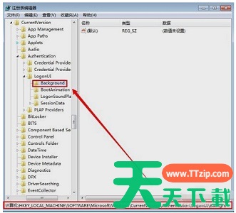 2、找到图示“background”,或者直接将路径复制到下方“HKEY_LOCAL_MACHINESOFTWAREMicrosoftWindowsCurrentVersion AuthenticationLogonUIBackground”