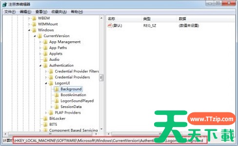 3、将下面这个路径复制粘贴到如图所示的位置“HKEY_LOCAL_MACHINESOFTWAREMicrosoftWindowsCurrentVersion AuthenticationLogonUIBackground”
