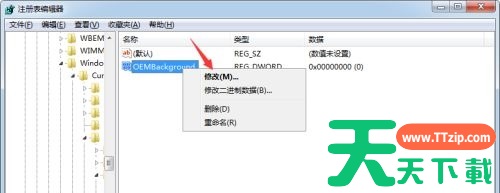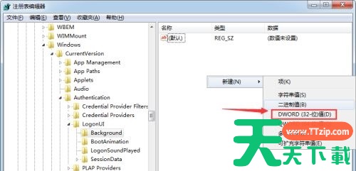 4、接着右键右边空白处,选择新建一个“DWORD”值,并命名为“OEMBackground”