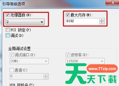 3、将处理器数改为“2”,勾选“最大内存”,系统会自动匹配最大内存数据。